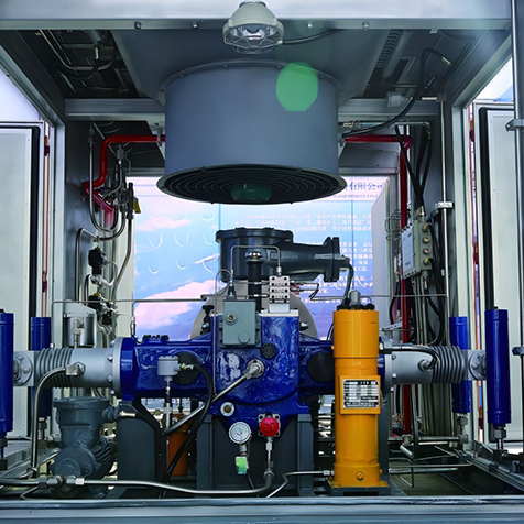Секция привода компрессора CNG для модульной подстанции выполнена в виде полностью горизонтальной симметричной конструкции с двумя рядами цилиндров с обеих сторон и работает в двухступенчатом режиме. Приводная часть использует принудительную систему смазки, а цилиндры — маломасляную смазку. Максимальная нагрузка — 90 кВт, средняя производительность до 2000 Нм³/ч. Подходит для компрессорных станций с суточной производительностью от 20 000 до 30 000 м³.